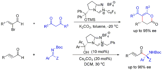 Enantioselective reactions of aldehydes catalyzed by NHC