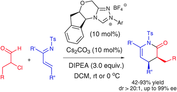 5. Teng-Yue Jian, Li-Hui Sun, Song Ye*. "Highly enantioselective [4 + 2] cyclization of chloroaldehydes and 1-azadienes catalyzed by N-heterocyclic carbenes". Chem. Commun. 2012, 48, 10907-10909. PDF