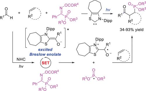 4. "Phosphonylacylation of Alkenes Enabled by Visible-Light-Induced N-Heterocyclic Carbene Catalysis" Ming-Lei Jin, Yi-Xiong Dong, Zhong-Hua Gao*, and Song Ye* Org. Lett. 2024, 26, 1711.