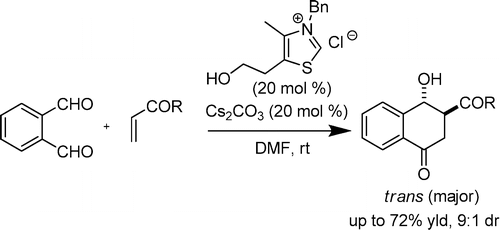 1. Fang-Gang Sun, Xue-Liang Huang, Song Ye*. "Diastereoselective Synthesis of 4-Hydroxytetralones via a Cascade Stetter-Aldol Reaction Catalyzed by N-Heterocyclic Carbenes." J. Org. Chem. 2010, 75, 273-276. PDF
