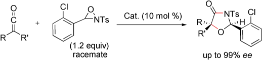 8. Pan-Lin Shao, Xiang-Yu Chen, Song Ye*. "Formal [3+2] Cycloaddition of Ketenes and Oxaziridines Catalyzed by Chiral Lewis Bases:Enantioselective Synthesis of Oxazolin-4-ones." Angew. Chem. Int. Ed. 2010, 49, 8412-8416. PDF