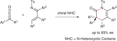 9. Teng-Yue Jian, Pan-Lin Shao, Song Ye*. "Enantioselective [4+2] cycloaddition of ketenes and 1-azadienes catalyzed by N-heterocyclic carbenes." Chem. Commun. 2011, 47, 2381-2383. PDF