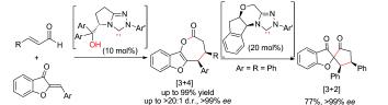 2."Bifunctional N-Heterocyclic Carbene Catalyzed [3+4] Annulationof Enals and Aurones" Zhi-Qin Liang, Zhong-Hua Gao, Wen-Qiang Jia, and Song Ye. Chem. Eur. J. 2015, 21, 1868 – 1872. pdf