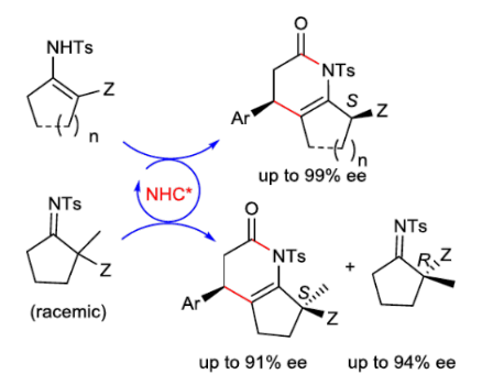 1. "(Dynamic) Kinetic Resolution of Enamines/Imines: Enantioselective N‐Heterocyclic Carbene‐Catalyzed [3+3] Annulation of Bromoenals and Enamines/Imines" Kun-Quan Chen Zhong-Hua Gao Song Ye* Angew. Chem. Int. Ed. 2019, 58,1183.