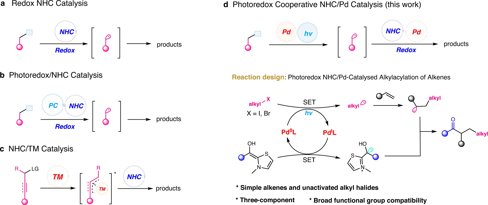 2. “Photoredox cooperative N-heterocyclic carbene/palladium-catalysed alkylacylation of alkenes” You-Feng Han, Ying Huang, Hao Liu, Zhong-Hua Gao, Chun-Lin Zhang*, and Song Ye* Nat. Commun. 2022, 13, 5754.